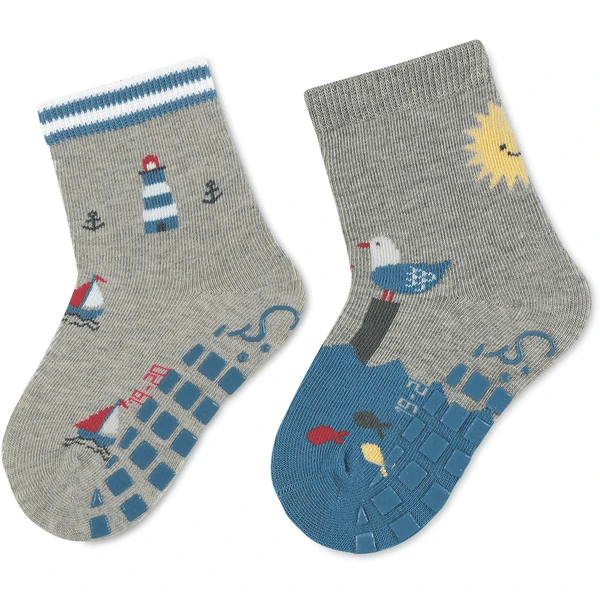Sterntaler ABS sokken dubbelpak vuurtoren/zeemeeuw lichtgrijs