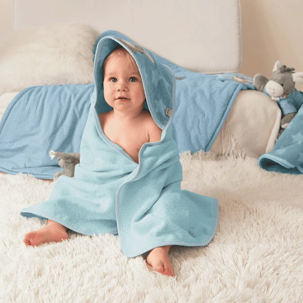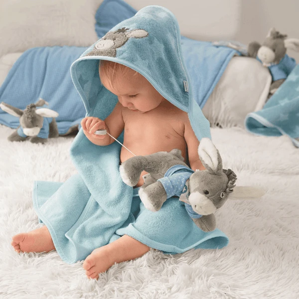 Badhanddoek van zachte badstof met geappliqueerd borduurmotief Donkey Emmi. De knuffelgarantie na de B aden .