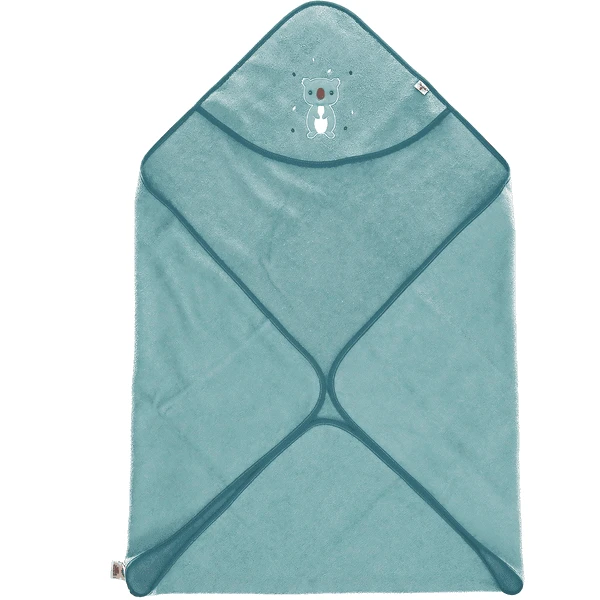 - Badcape met capuchon, gemaakt van zachte badstof (biologisch).