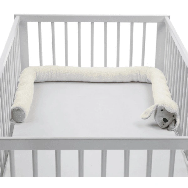 De zachte bedrol van fleece uit de Stanley-serie is een praktische hoofdbescherming voor het kinderledikant of de box, kan worden vastgebonden en beschermt tegen tocht.
