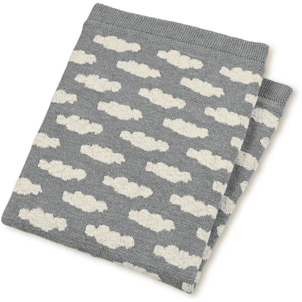 Gebreide deken met prachtige wolken. Deze deken nodigt uit tot kruipen en knuffelen.