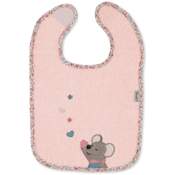 Praktisch klittenband slabbetje voor het gemakkelijk aan- en uitkleden in zachte badstofkwaliteit met geappliqueerd borduurmotief Mouse Mabel.