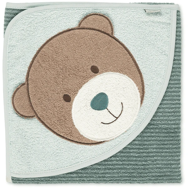 De pluizige badhanddoek met capuchon van badstof met uitgebreide applicatiebeugel “Ben” beschermt de natte kop tegen tocht! voor de knuffelgarantie volgens de B aden .