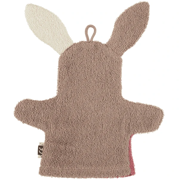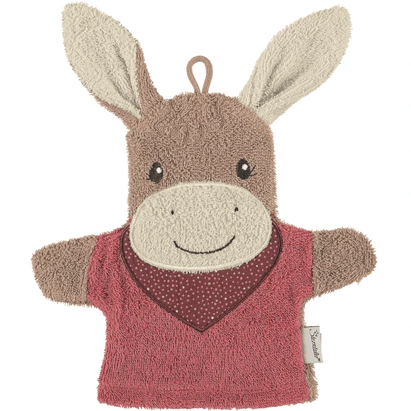 2 in 1: Washandje en handpop ezeltje “Emmily” van badstof maken het wassen erg leuk.