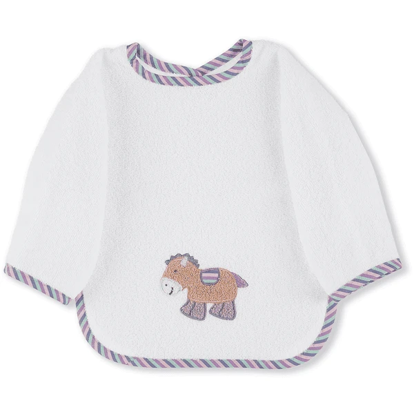 Slabbetje met praktische klittenbandsluiting in aangename badstofkwaliteit, met geappliqueerd borduurmotief Pony “Pauline”.